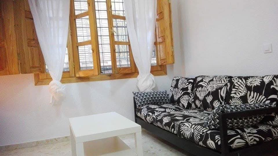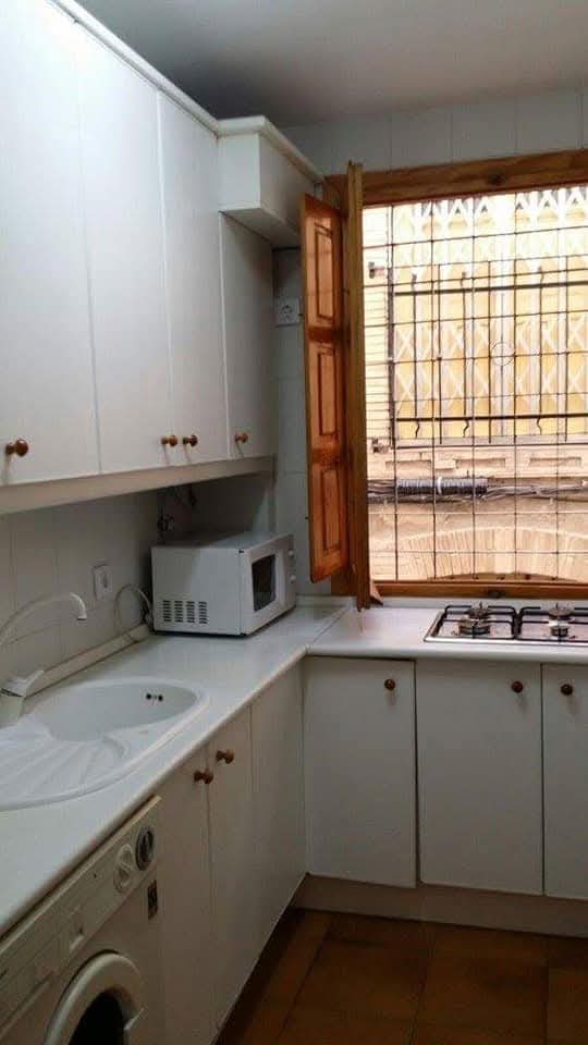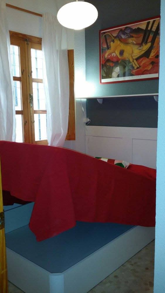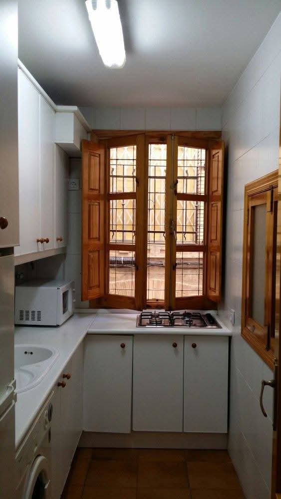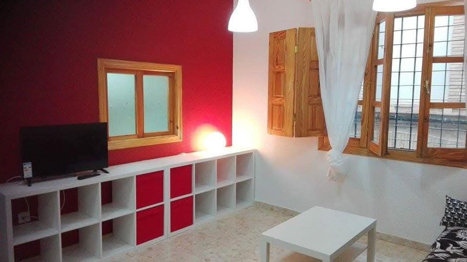 Alquiler piso junto plaza san Bartolomé de Jaén, en el centro, calle peatonal, planta baja,  amueblado, 1 habitación, armario empotrado, cama canape, techos altos ailantes, zona fresca antigua judería.